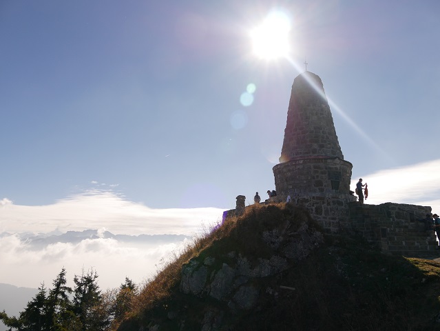 Der Grünten hat mehrere kleine Gipfel, der Hauptgipfel heißt Übelhorn. Auf diesem steht das markante Jägerdenkmal, das wir nach etwa einer halben Stunde Gehzeit erreichten.