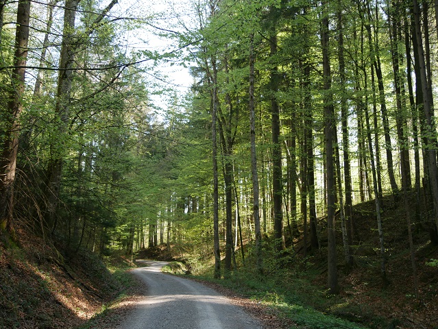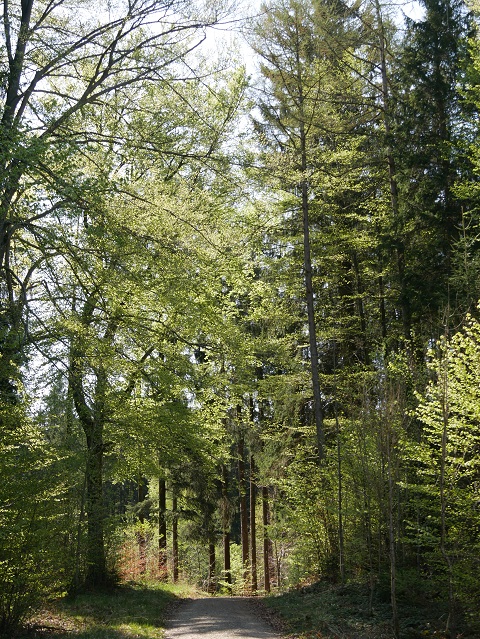 Nach unserem Erkundungsgang folgten wir dem Pfad wieder hinunter, bogen dort aber rechts ab, da wir ja einen Rundweg gehen wollten. Dieser führte durch den lichten Frühlingswald und schließlich wieder zurück zum Wanderparkplatz.