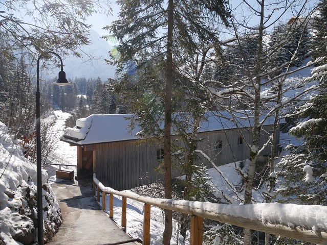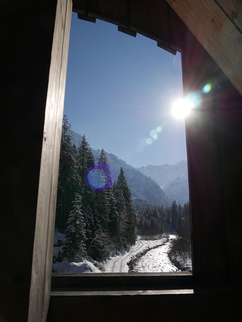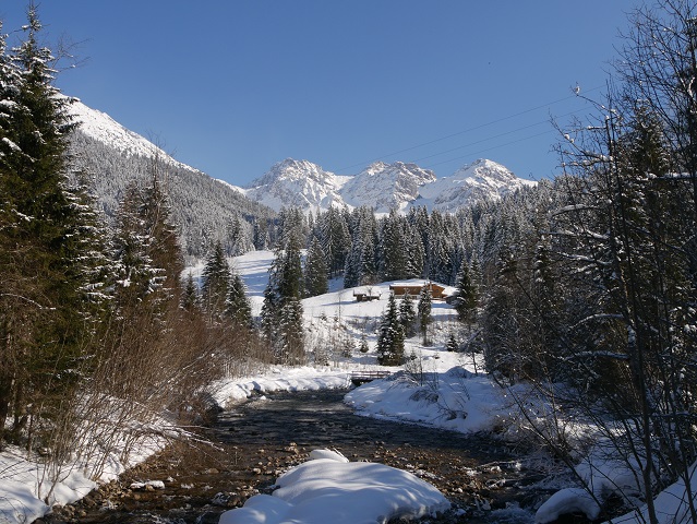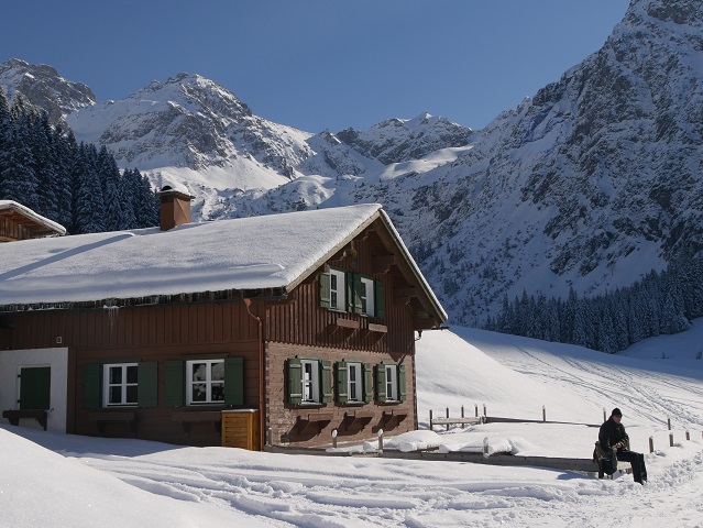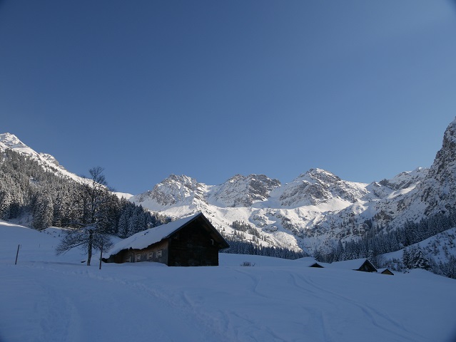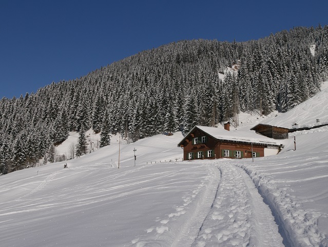 Noch ein Stückchen oberhalb liegt die Innere Wiesalpe auf der Sonnenseite des Wildentals. Normalerweise ist sie auch im Winter geöffnet.