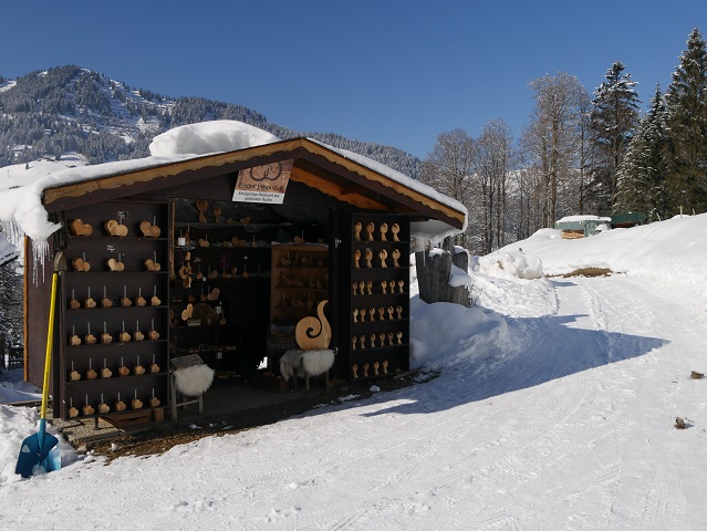 Er führt zunächst zu einem Gehöft, an dem man allerlei Vasen und Herzen aus gestockter Buche sowie Eier von glücklichen Hühnern kaufen kann.