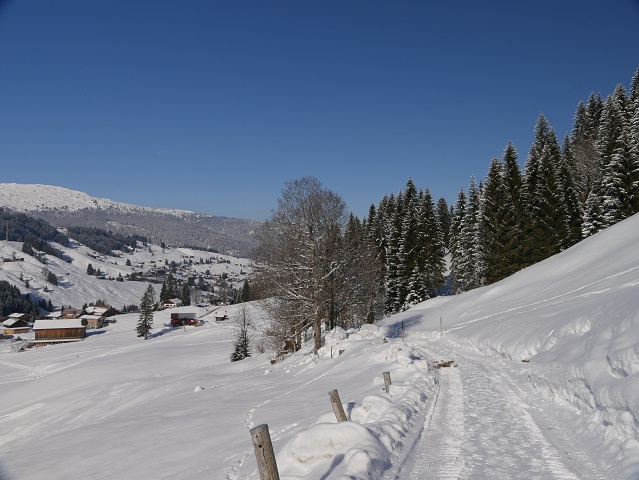 Wir stoßen auf den bestens präparierten Breitachweg und folgen ihm in Richtung Baad.